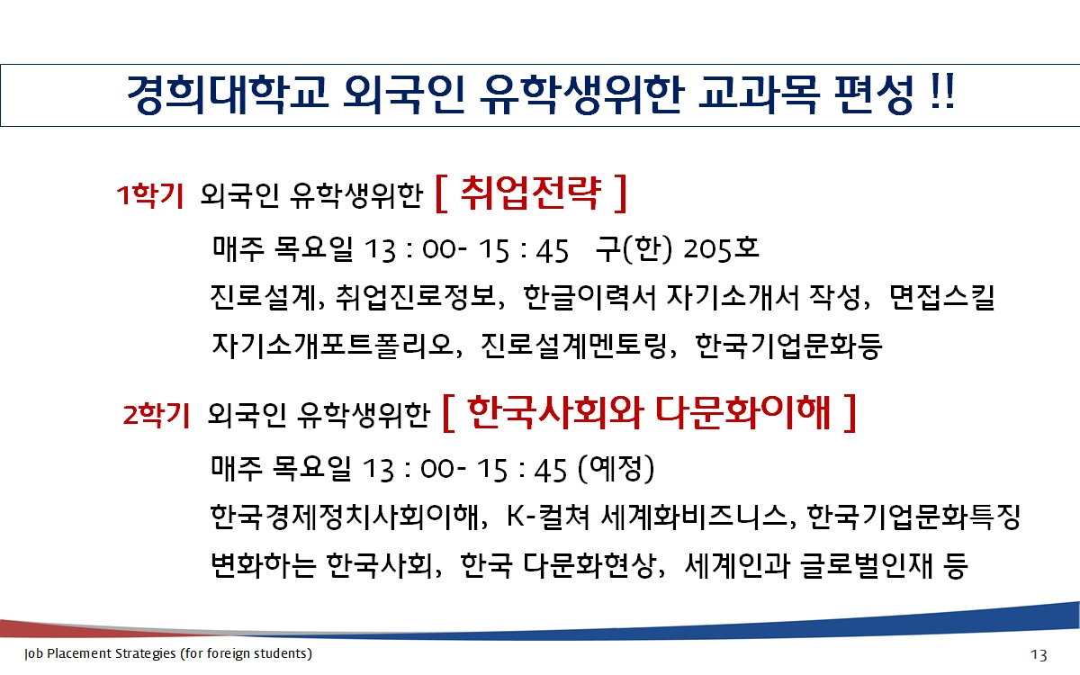 2026년 03월 _ 외국인유학생 [ 취업전략 ] [ 한국사회와다문화이해 ] 교과목 개강 _ 광운대 한라대 경희대